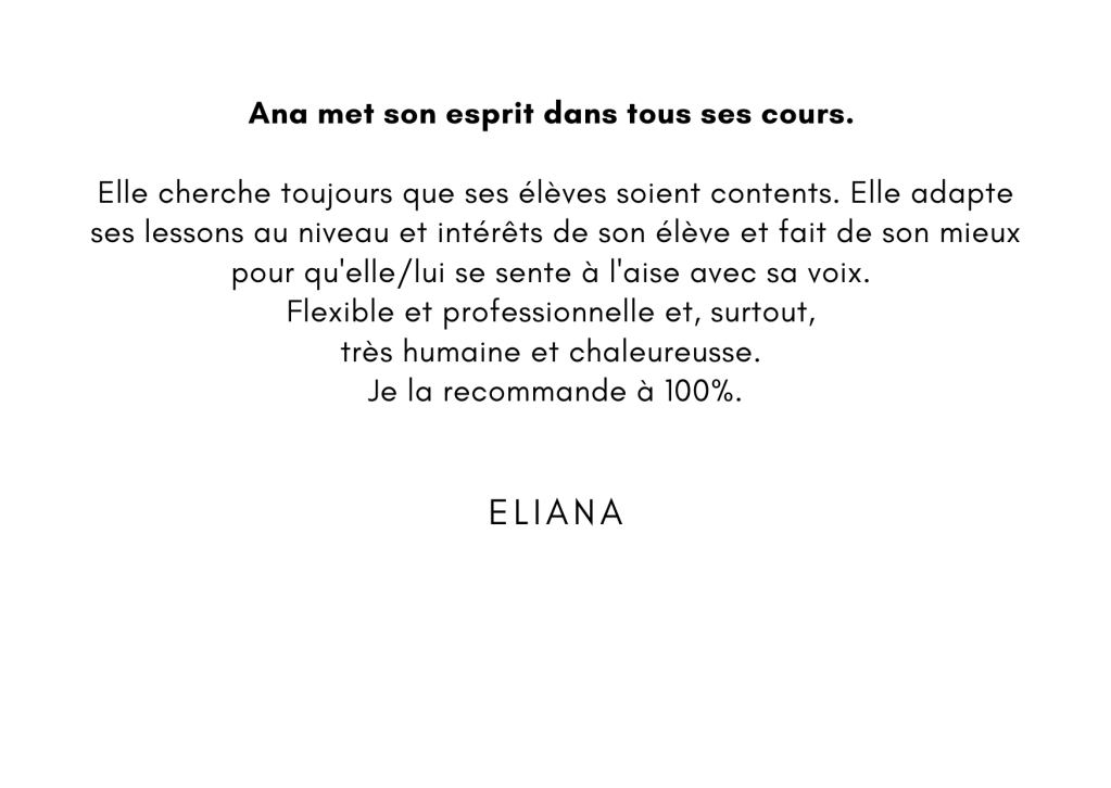 Quoi ? Je propose des cours de chant ou coaching vocal vous permettant d’acquérir une technique vocale de base, axée sur un chant libre et sain. Pour ceux qui sollicitent beaucoup leur voix dans leur vie professionnelle, je propose un programme spécifique sur la voix parlée et la prise de parole en public.